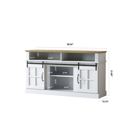 58" TV Stand With Storage Cabinet And Shelves, TV Console Table Entertainment Center For Living Room, Bedroom - White