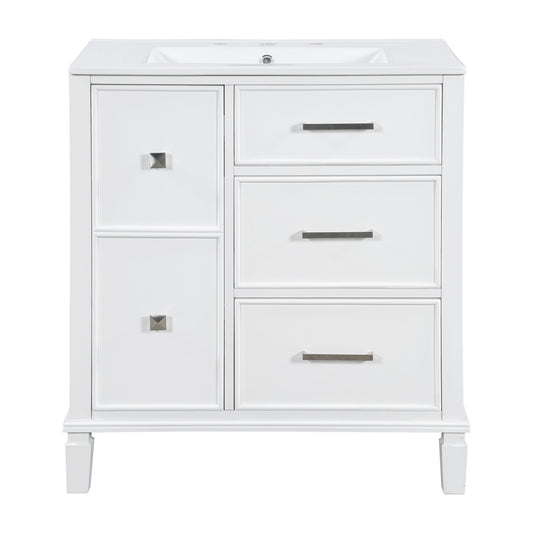 Bathroom Vanity With Ceramic Sink, Soft Close Drawers, Door Organizer, Divider Drawer, Adjustable Foot Pads