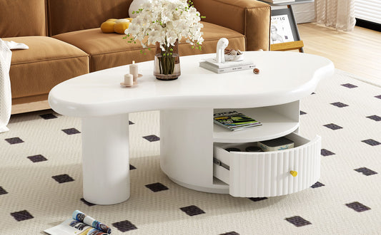 Cloud - Coffee Table, Irregular Shape Coffee Table With 1 Dreawer And Shelf For Living Room - White