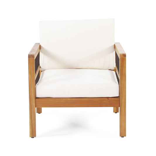 Club Chair With Slat Panel Design - Teak / Beige