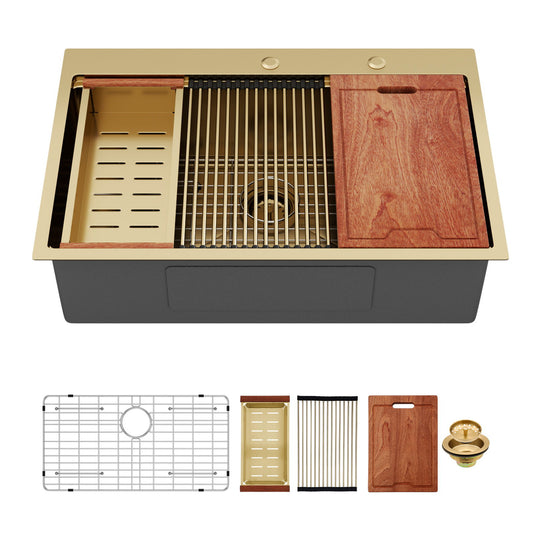 Drop-In Stainless Steel Kitchen Sink With Pull-Out Faucet And Soap Dispenser
