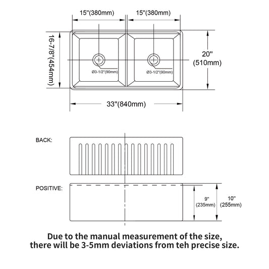Farmhouse Sink Workstation 33" Ceramic Double Bowl Kitchen Sink With Ledges - White