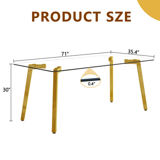 Minimalist Rectangular Dining Table With Transparent Glass Top And Metal Legs