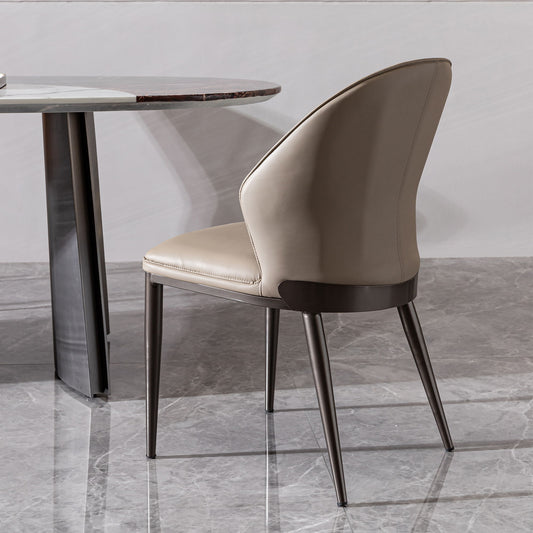 Modern Dining Chair (Set of 2) With Unique Backrest Design Leather - Beige / Black