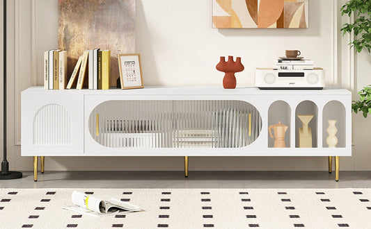 Modern TV Stand With Glass Door, 4 Drawers And 2 Cabinets