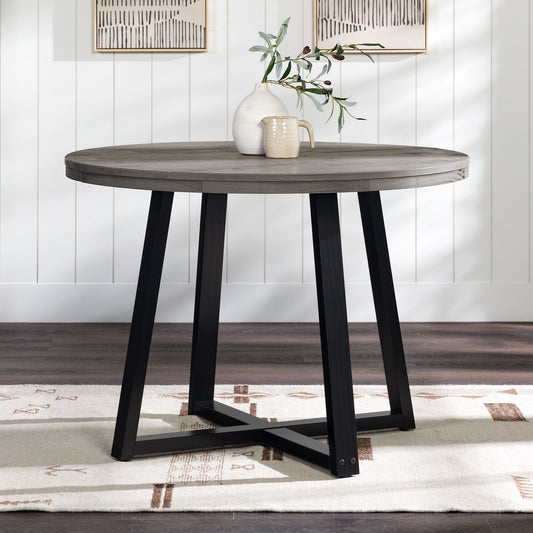 Rustic Dining Table Two Storage Drawers And Leaf - Gray