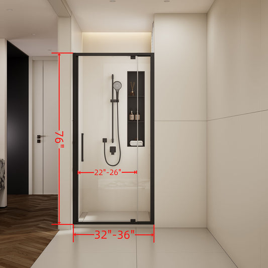 Scalable - Shower Door With 1 / 4" Clear Tempered Glass And Aluminium Alloy Frame - Matte Black