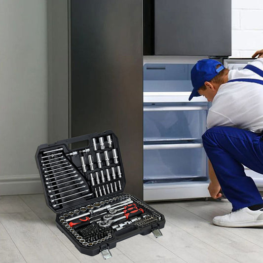 Tool Kit And Socket Wrench Set 216 Pieces Basic Portable Manual Repair Tool Set For Home Use Includes Case And Ratchet Wes And Wrenches - Black