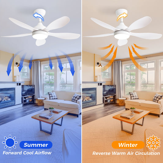 42" Ceiling Fan With Light And Remote Cotnrol 6 Speeds DC Reversible Motor - White