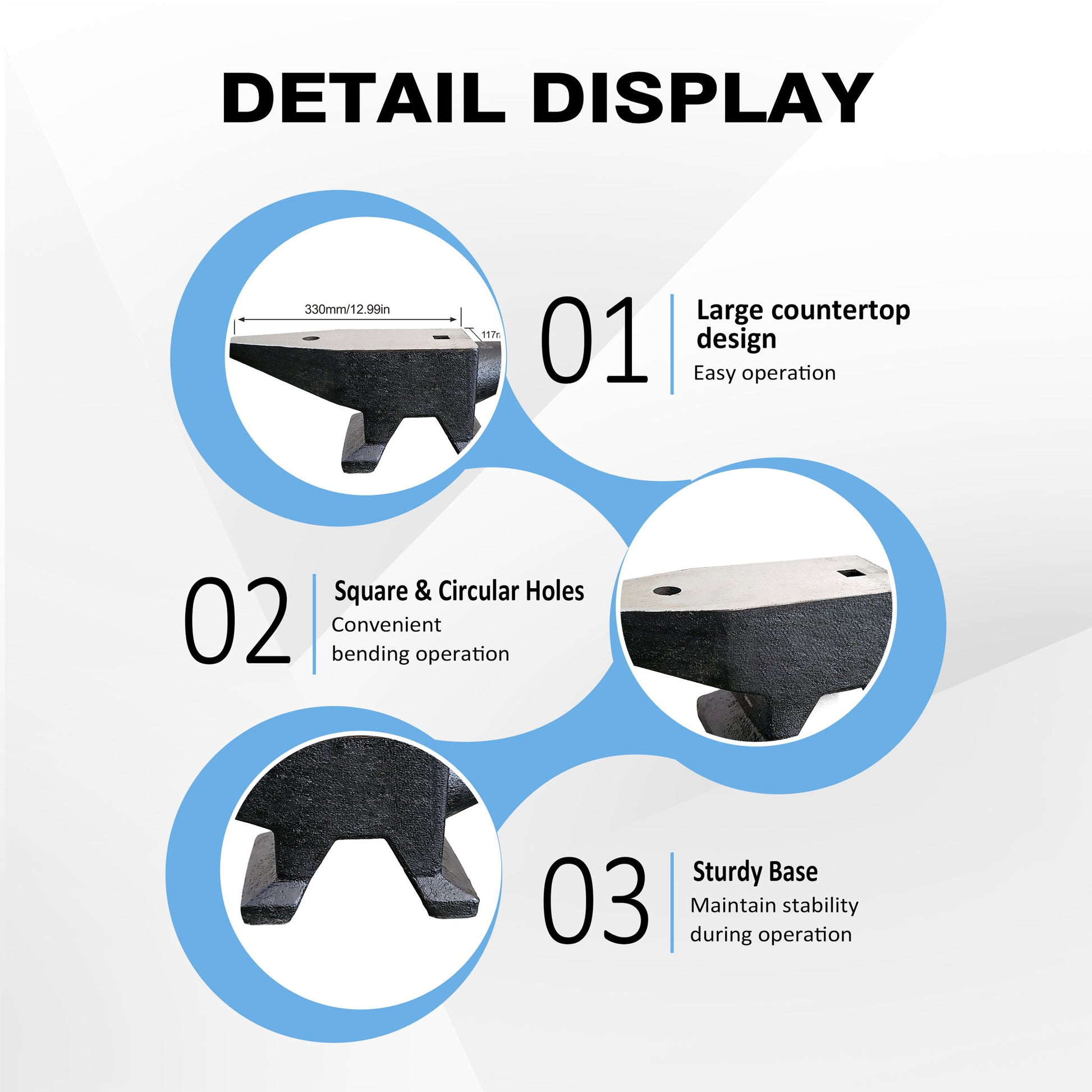 - Surface Treatment: The anvil has a completely polished surface area with excellent quenching treatment, achieving a hardness of up to HRC55, along with corrosion and rust resistance.