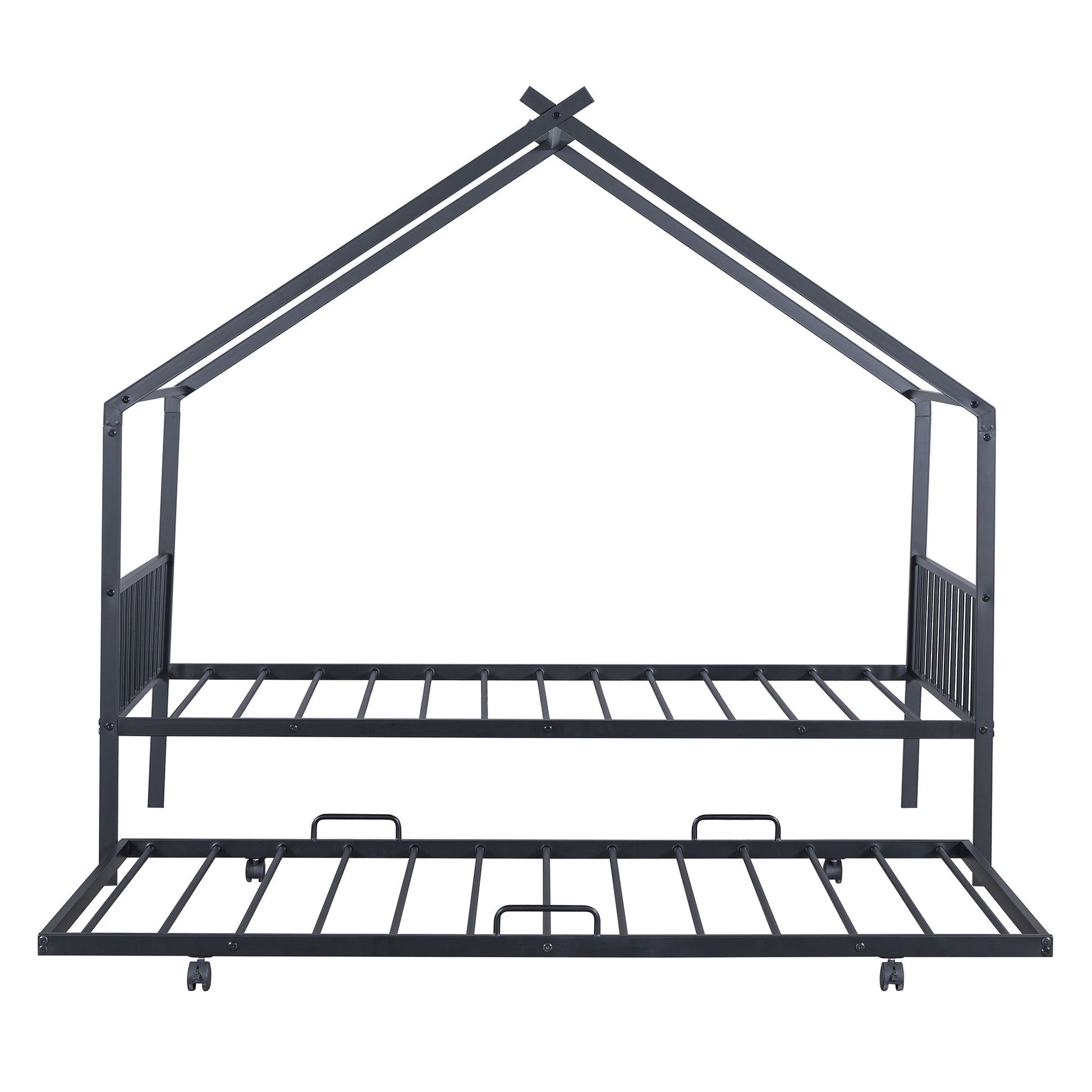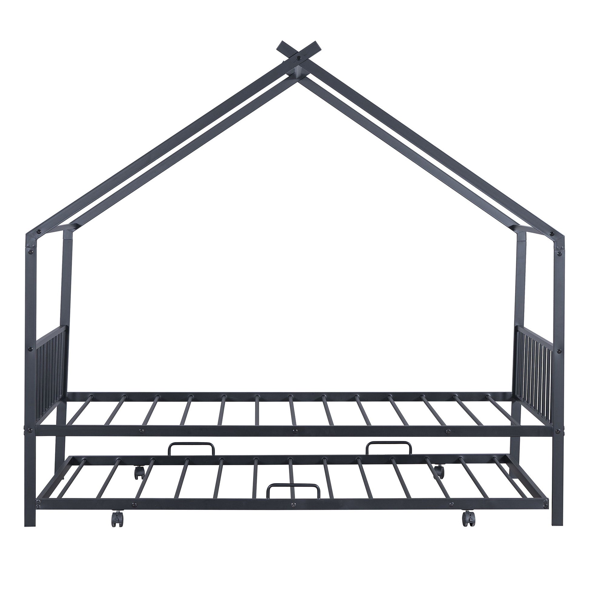 Twin Size House Bed With Twin Size Trundle - Black