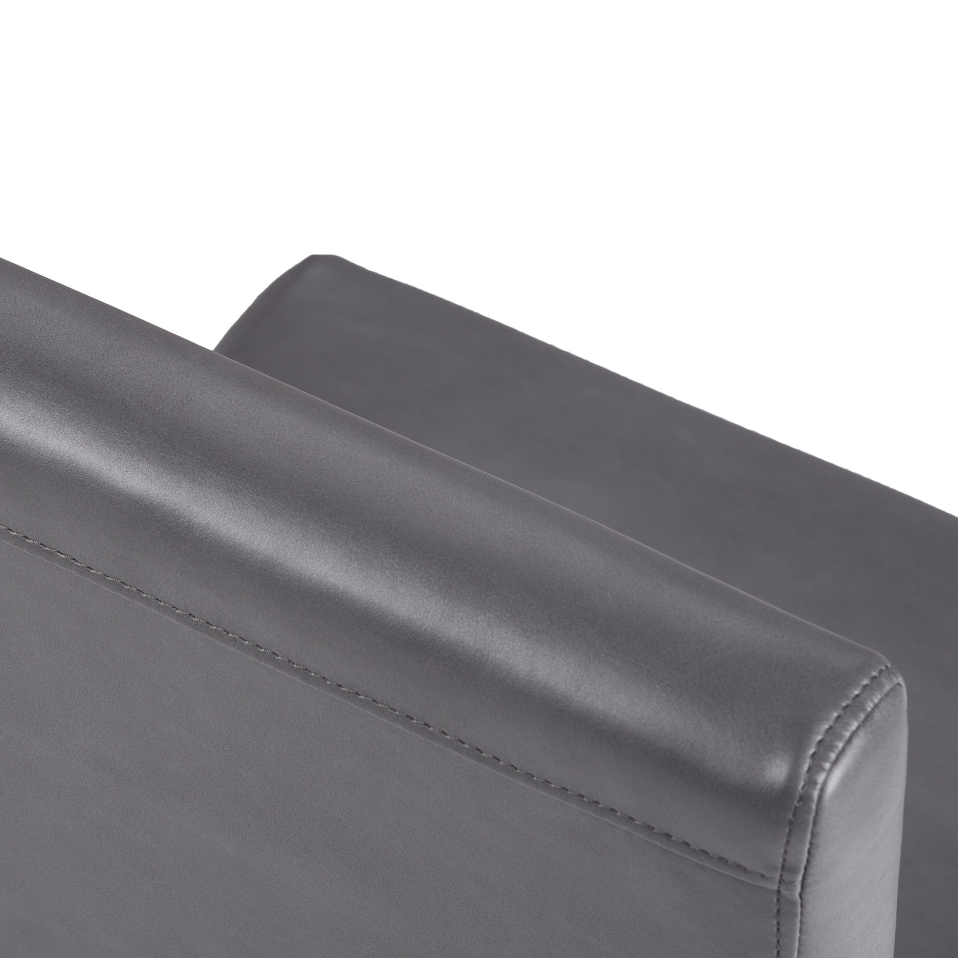 - Upholstered with durable premium Stone Grey Vegan Faux Leather
