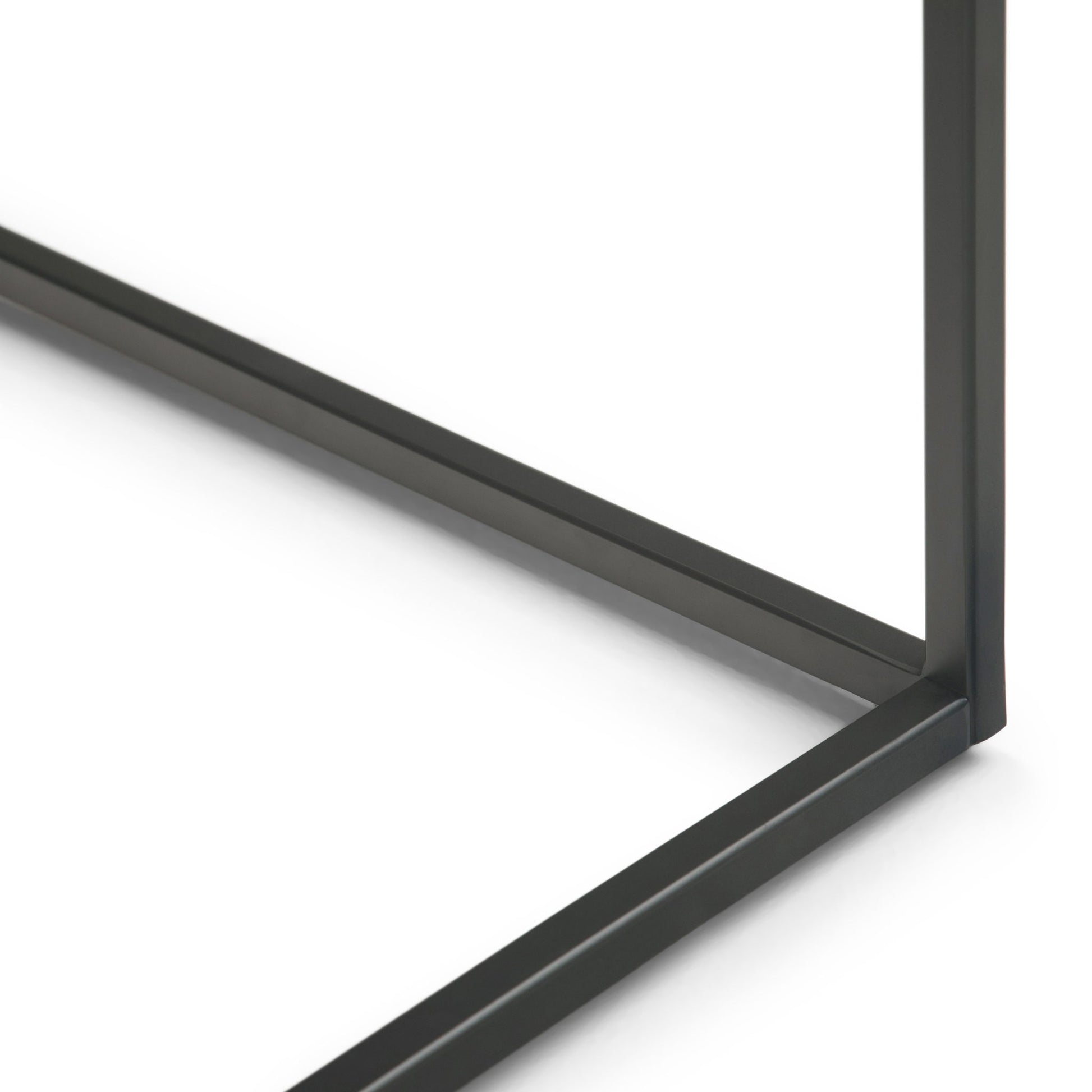 - Features fixed tray table top and solid metal frame and base in a rich black grey finish