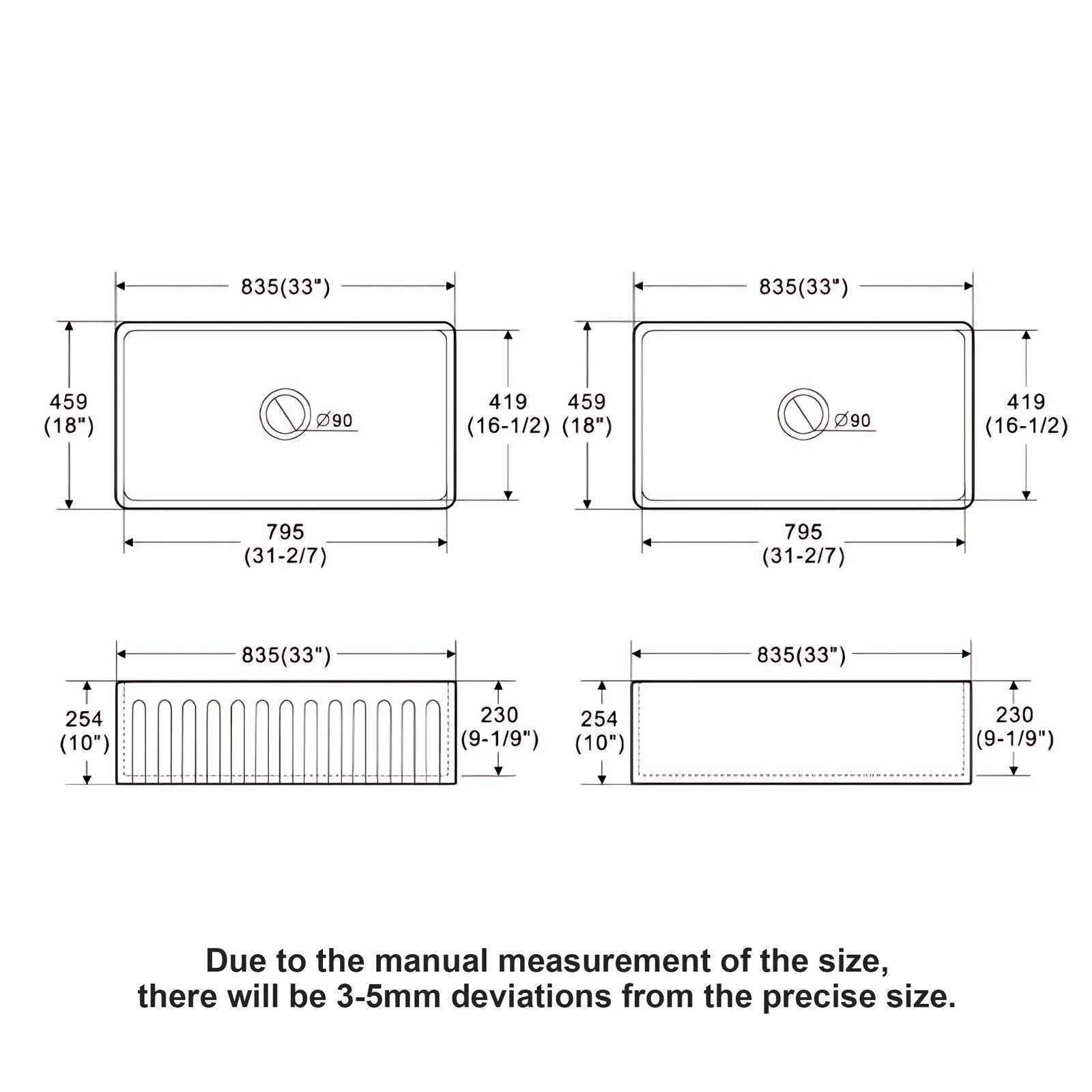 Single Bowl Kitchen Sink 33" Reversible Design With Durable And Deep Basin - White