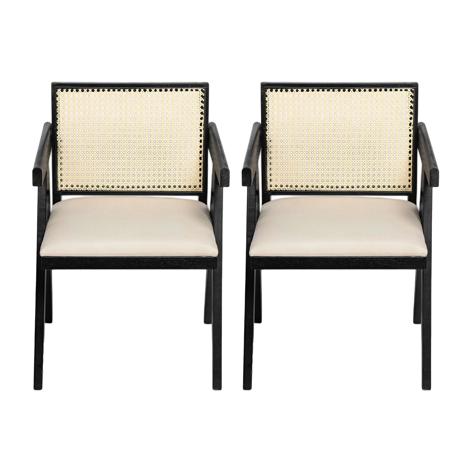 Chandigarh - Farmhouse Style Cane Upholstered Dining Chairs (Set of 2) - Black / Natural
