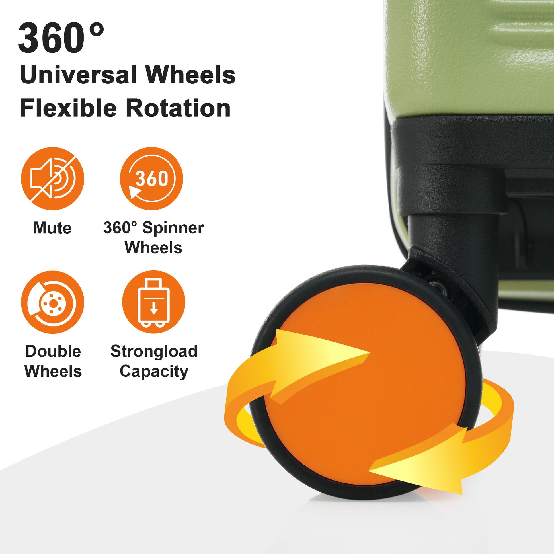 360° Spinner Wheels: Equipped with smooth 360° spinner wheels and carrying top and side handles, making travel more convenient and manageable.