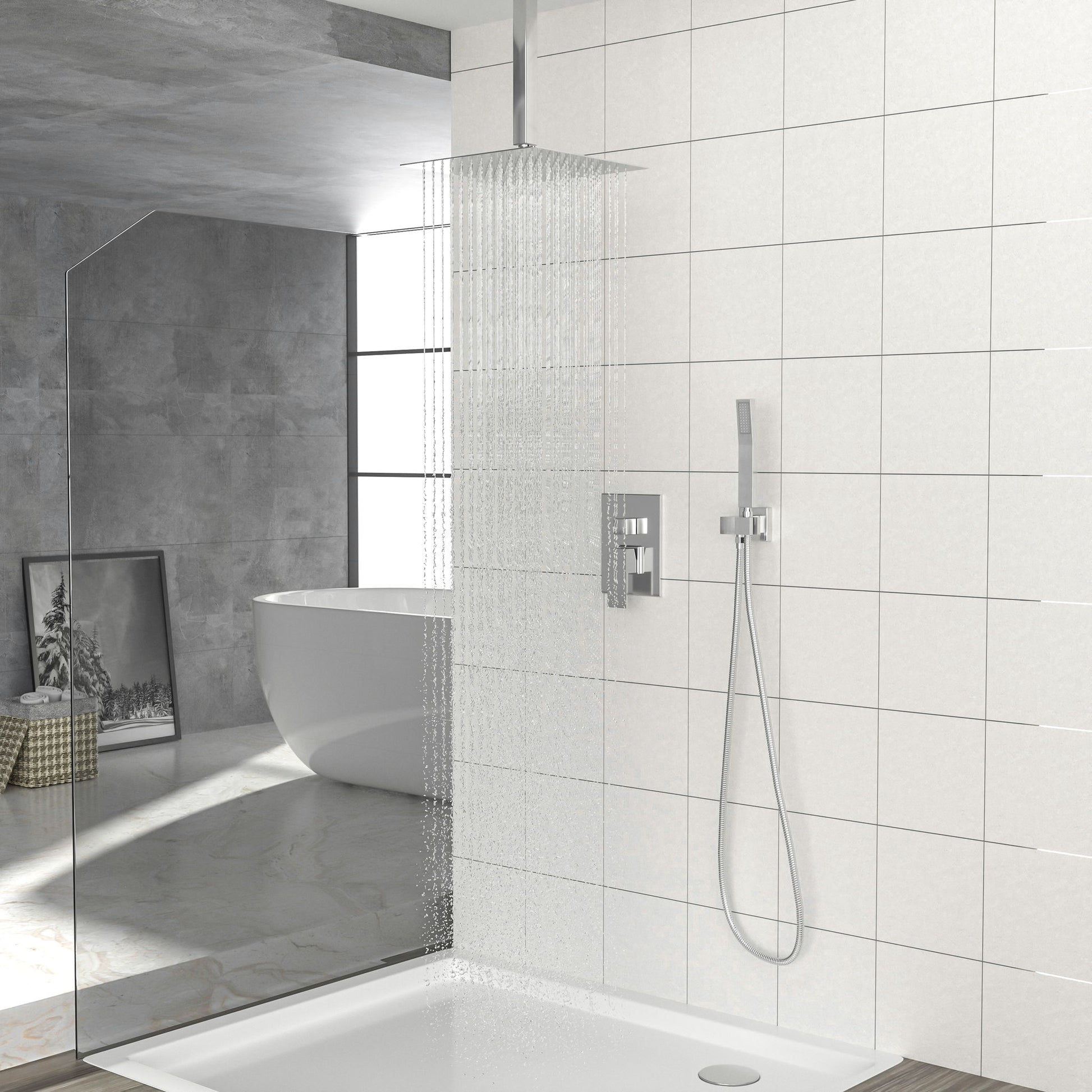 Dual Shower Head Ceiling Mount Square Rain Shower System With Adjustable Flow - Chrome
