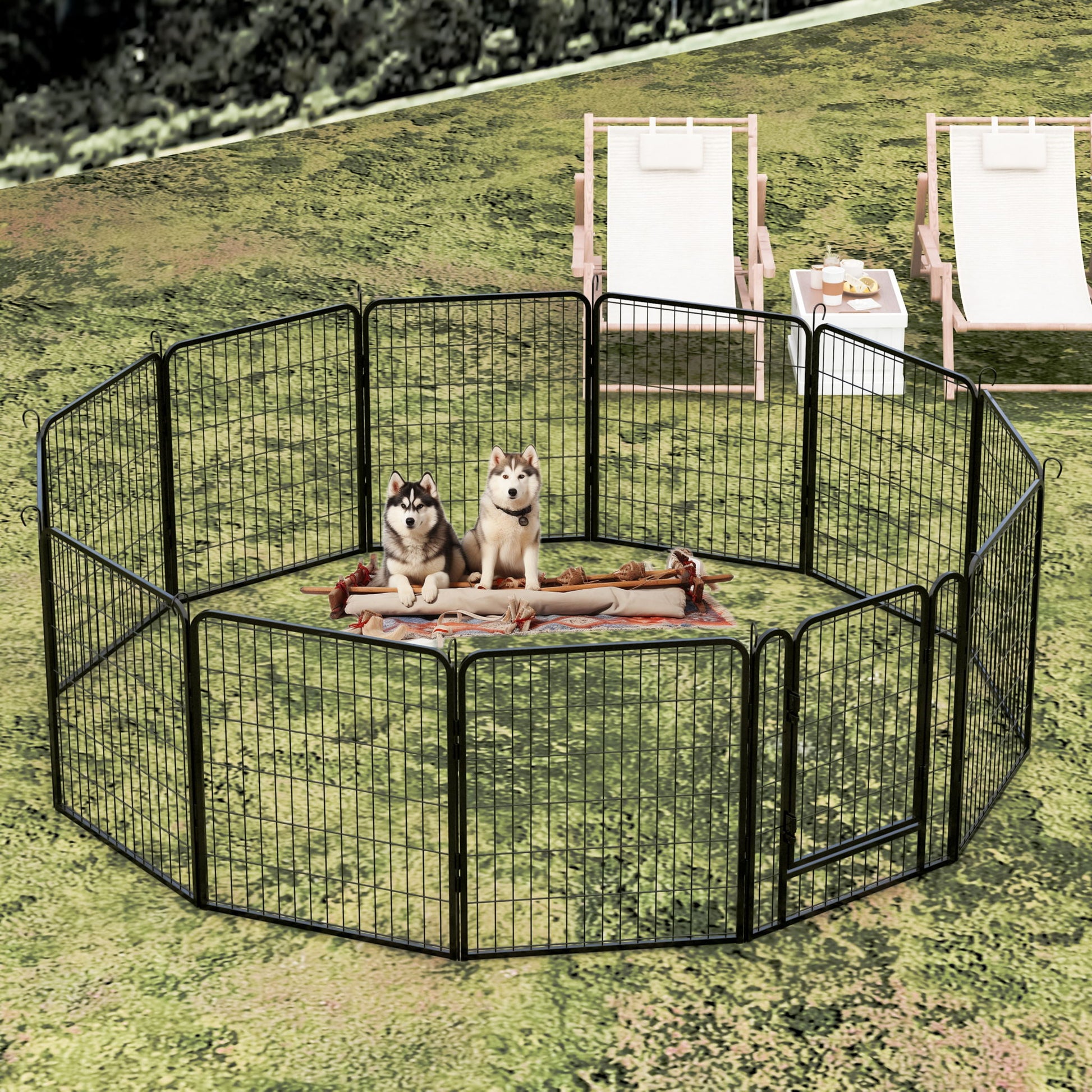12 Panels Heavy Duty Metal Playpen With Door, Dog Fence Pet Exercise Pen For Outdoor - Black