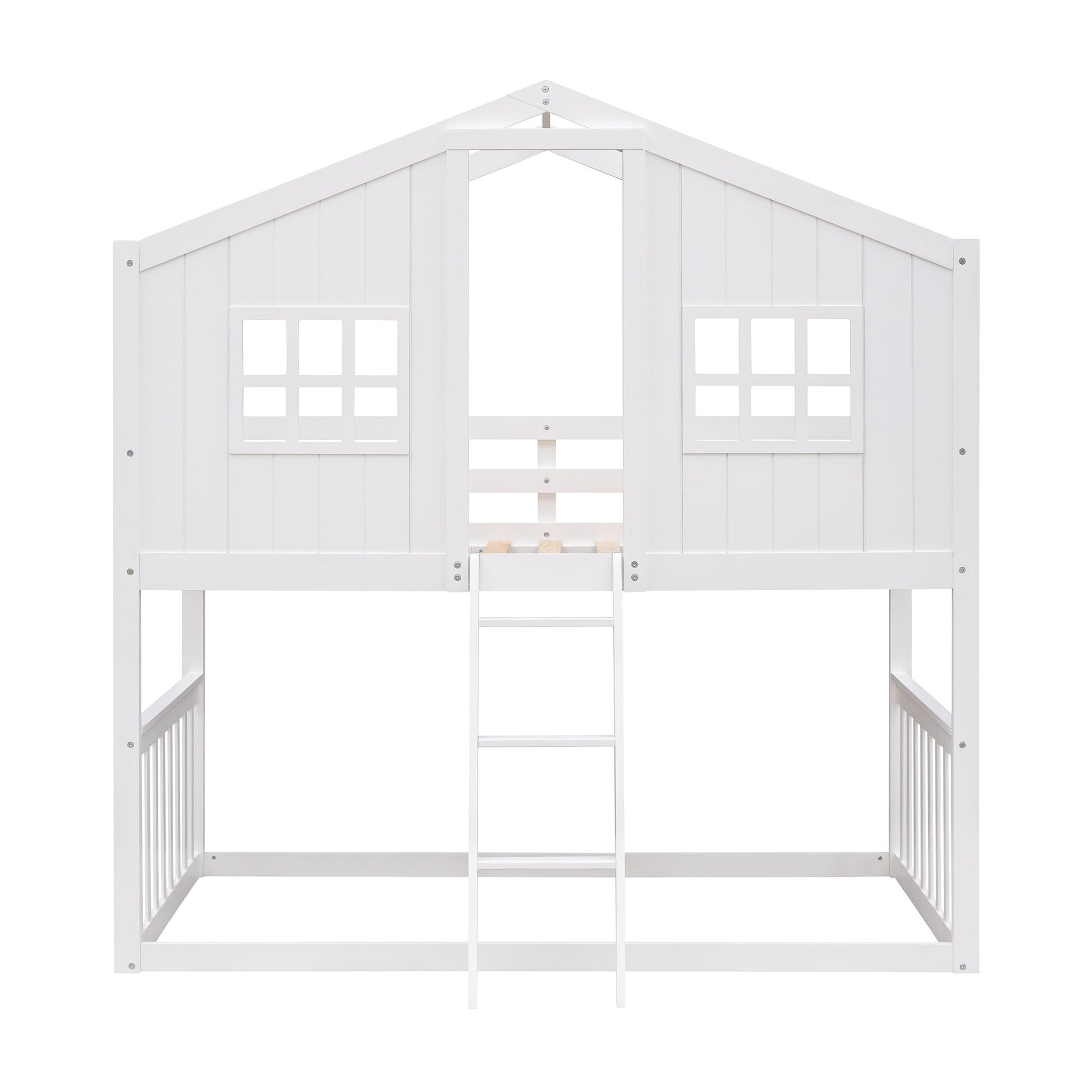 Choose the best with this bunk bed crafted from high-quality solid pine wood for lasting use, no box spring needed. Its classic house-shaped framework and sky roof create an imaginative playhouse environment. The fence-shaped appearance adds a touch of rural style, making it the bedroom's focus and offering both fun and elegance. Easy assembly with shipped parts and instructions, this bed is a chic barnyard-style addition, ensuring durability and a timeless design for your bedroom.