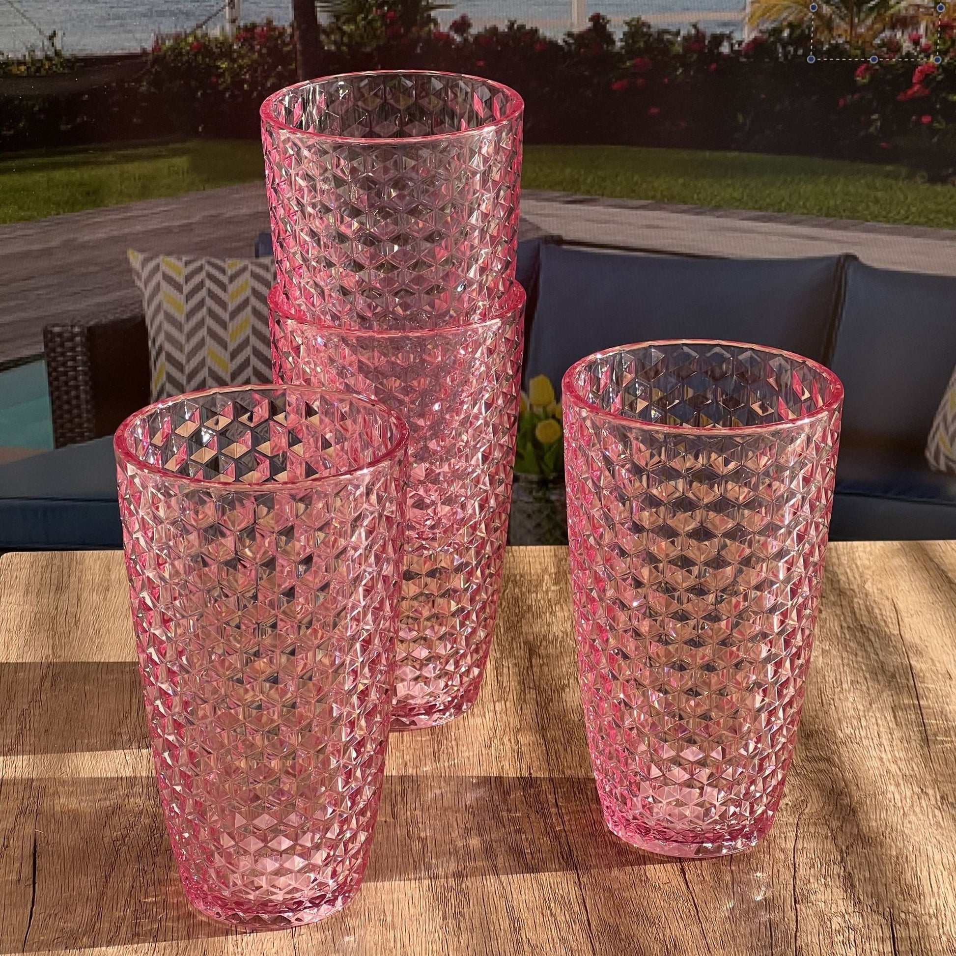 Leading Ware Diamond Cut Acrylic Glasses Drinking (Set of 4), 19Oz, Bpa Free - Pink