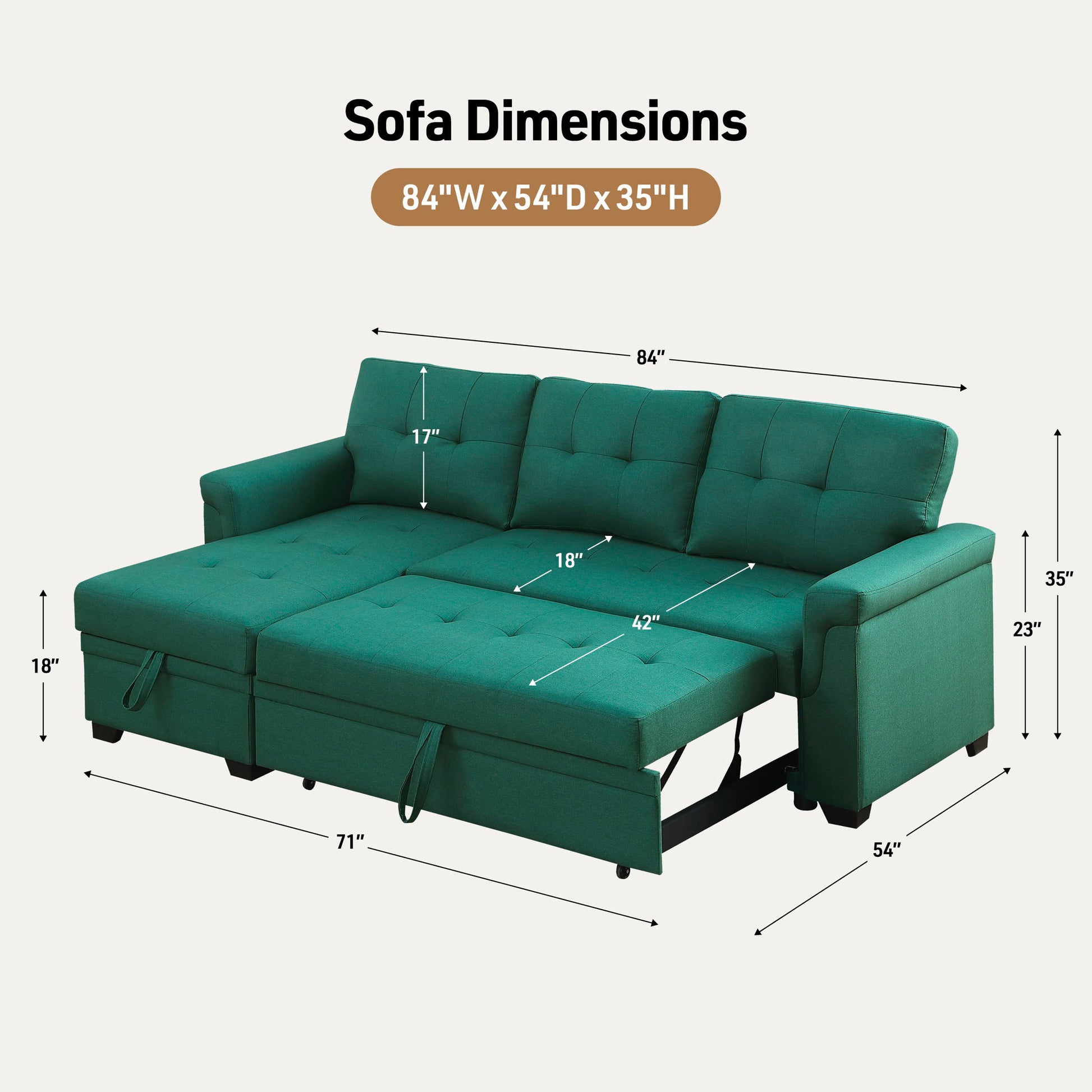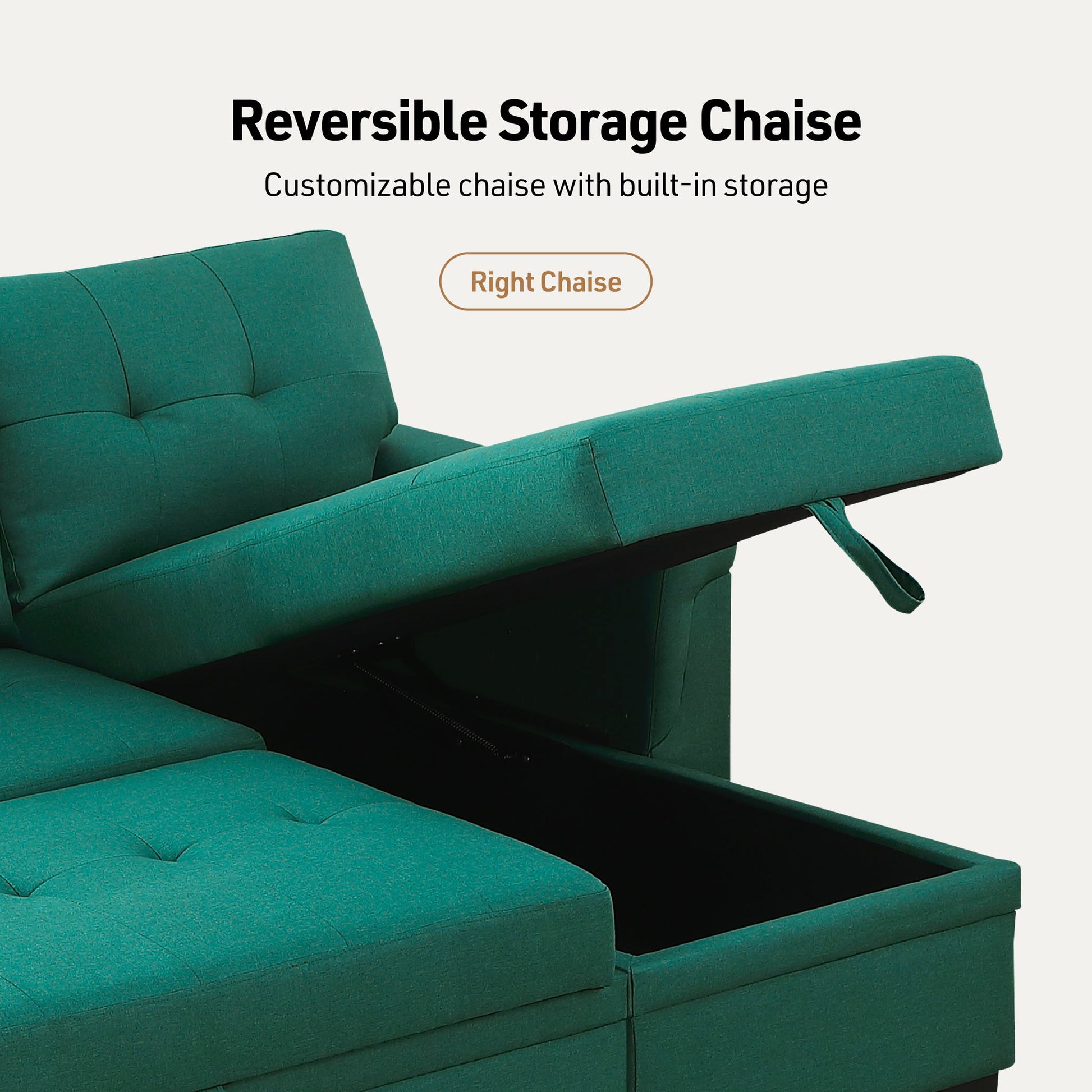 Lucca - Linen Reversible Sleeper Sectional Sofa With Storage Chaise - Green