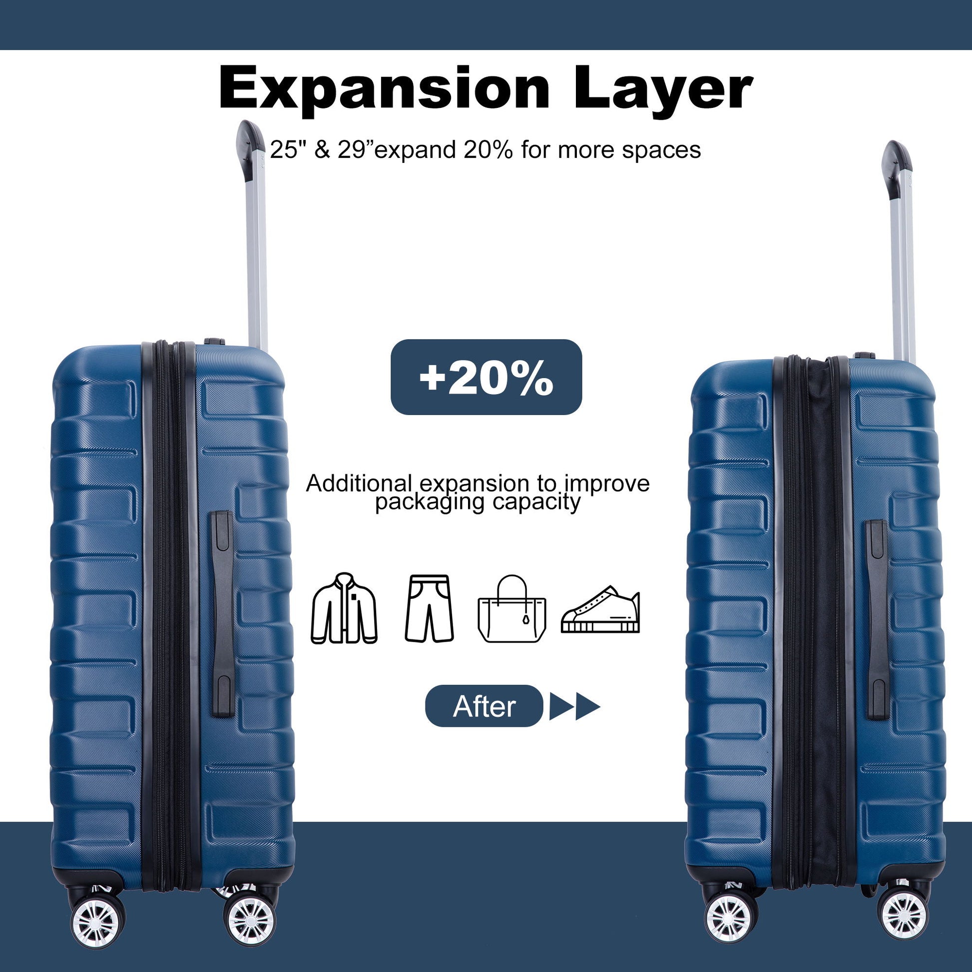 Luggage Set Of 5 Pieces, Expandable Hard Pc Luggage Set With Tsa Lock For Rotating Wheels, Lightweight Rolling Luggage - Dark Blue