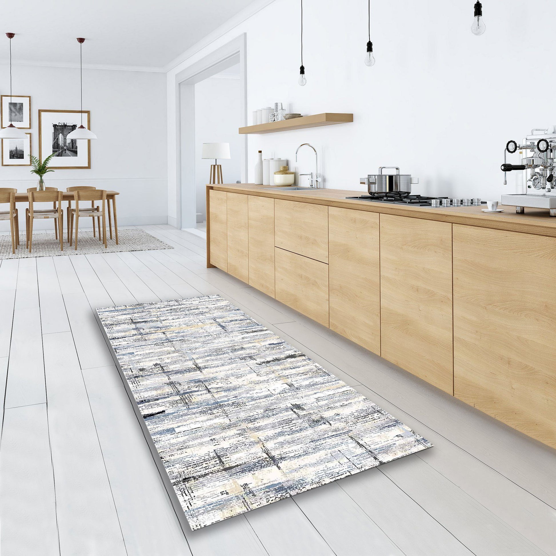 Macau - Non Slip Runner Rug - White / Gray