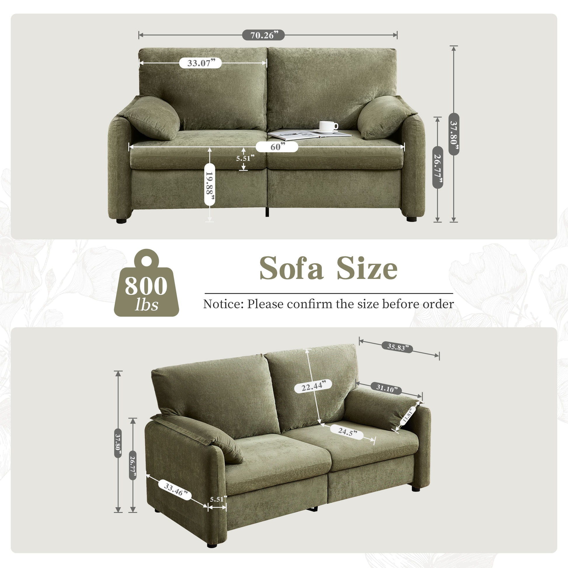 Modern Minimalist Down Filled Sofa, 800Lbs Capacity, Multiple Colors, Chenille Fabric - Green