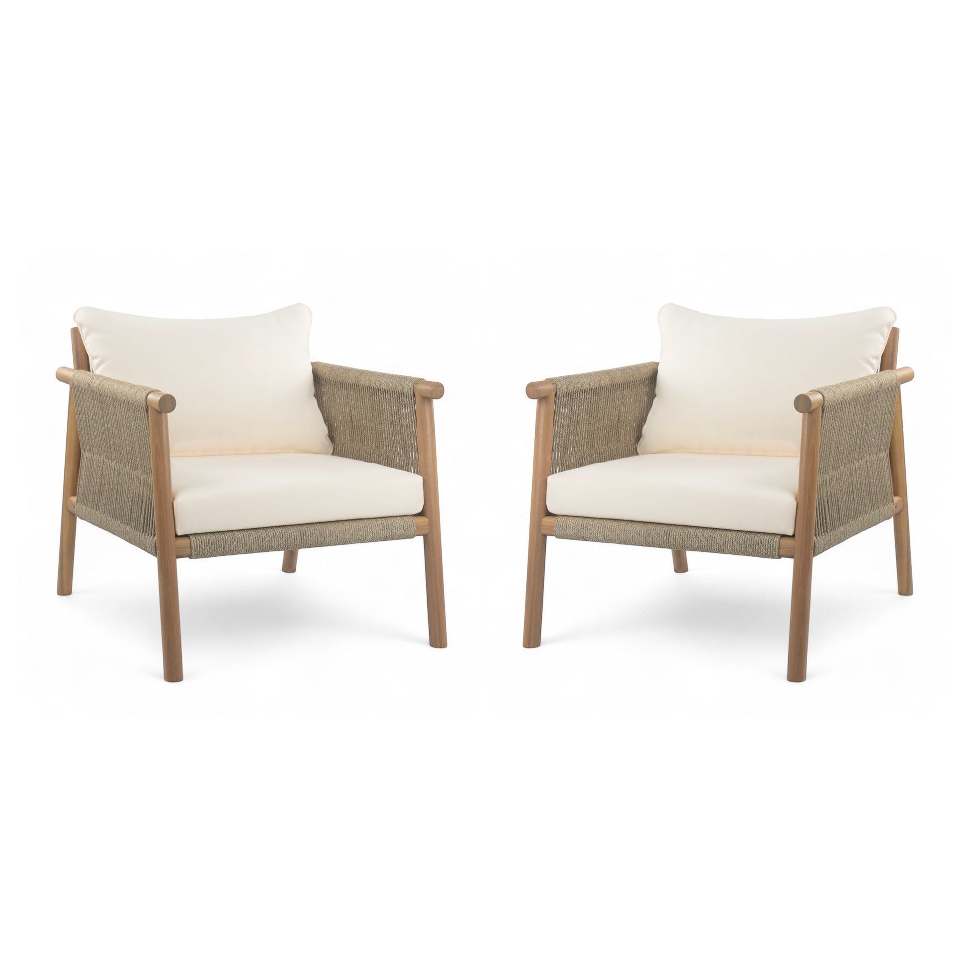 Modern Outdoor Woven Lounge Chair Set With Solid Wood Frame And Polyester Cushions - Teak