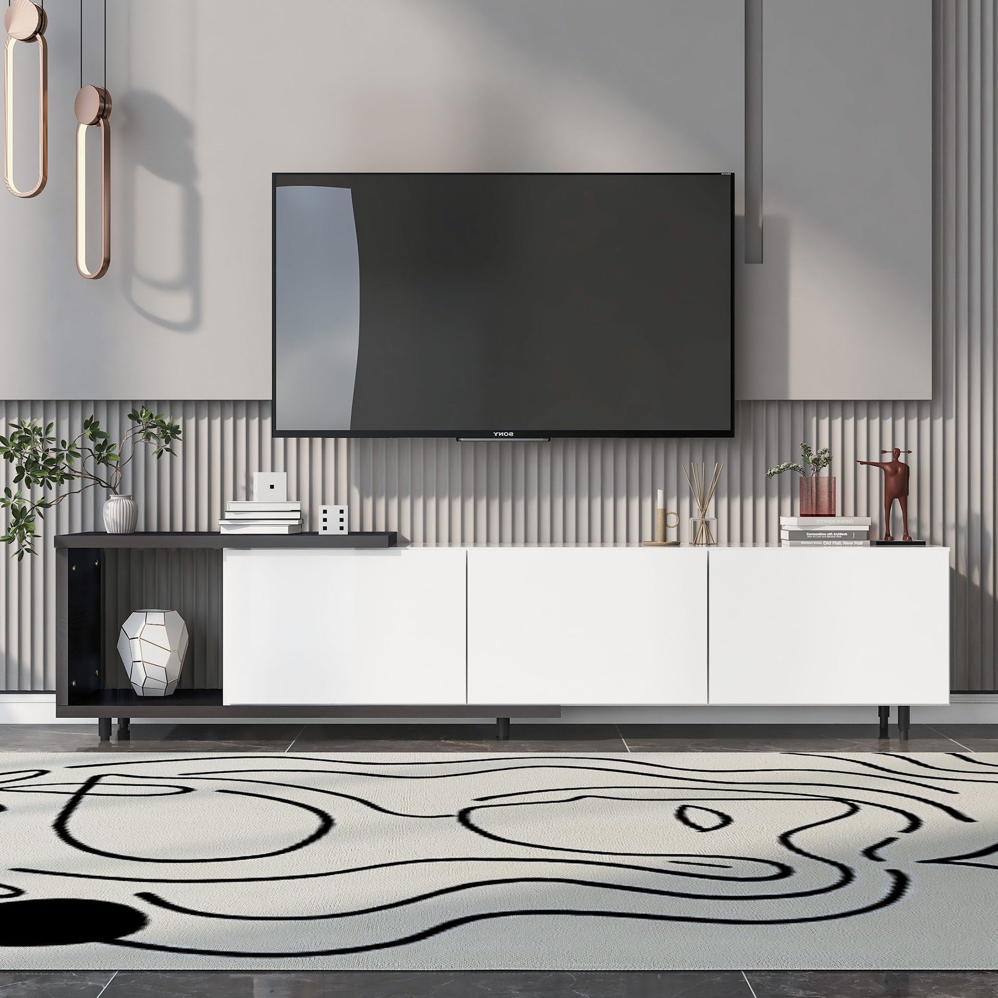 Modern Stylish Extendabletv Stand TV Cabinet For 80" TV - Black / White