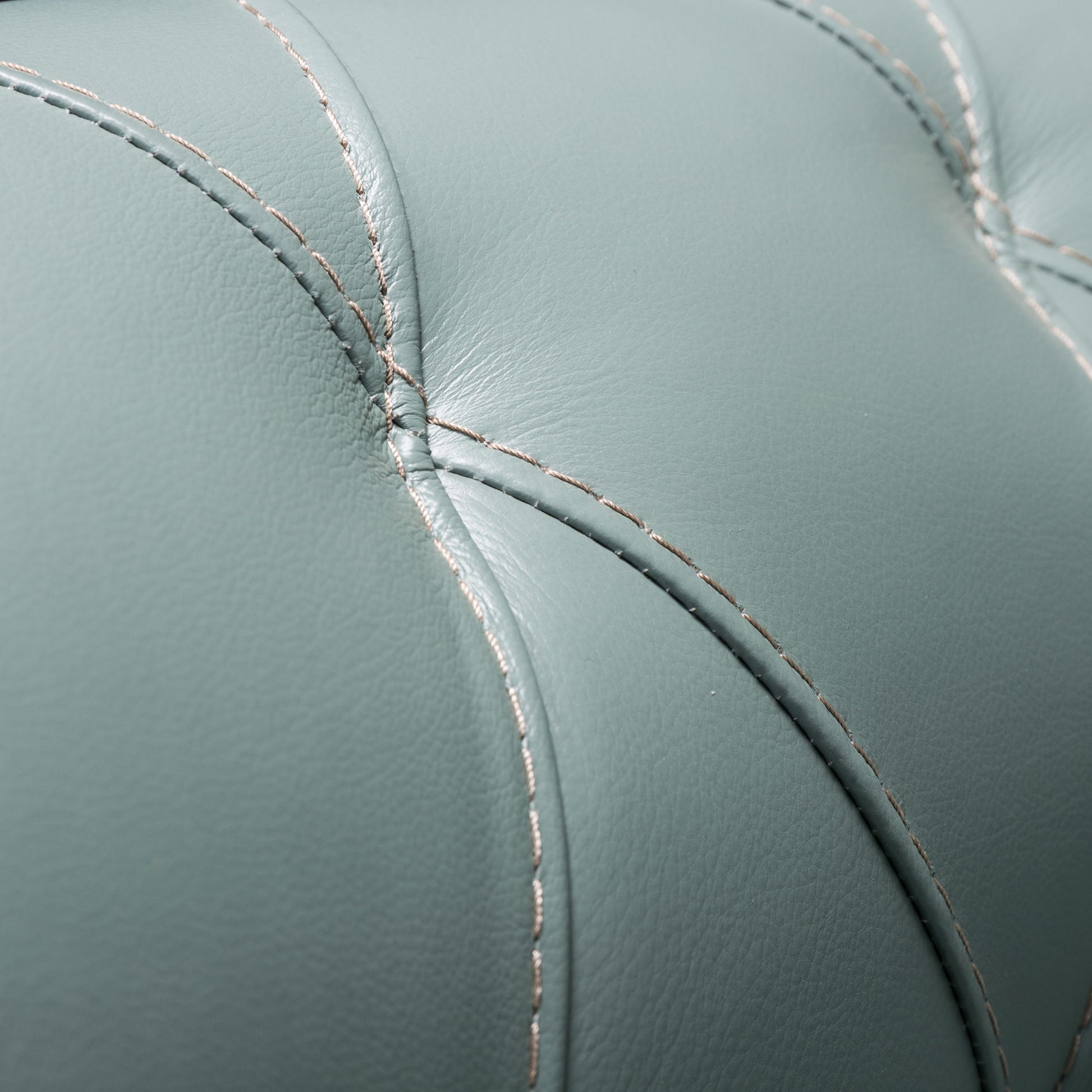 For sleek sophistication and understated elegance look no further. This beautiful collection is upholstered in supple top grain leather, designed with flared arms and tapered legs, each piece is finished with exquisite stitching detail and chic tufted cushions.