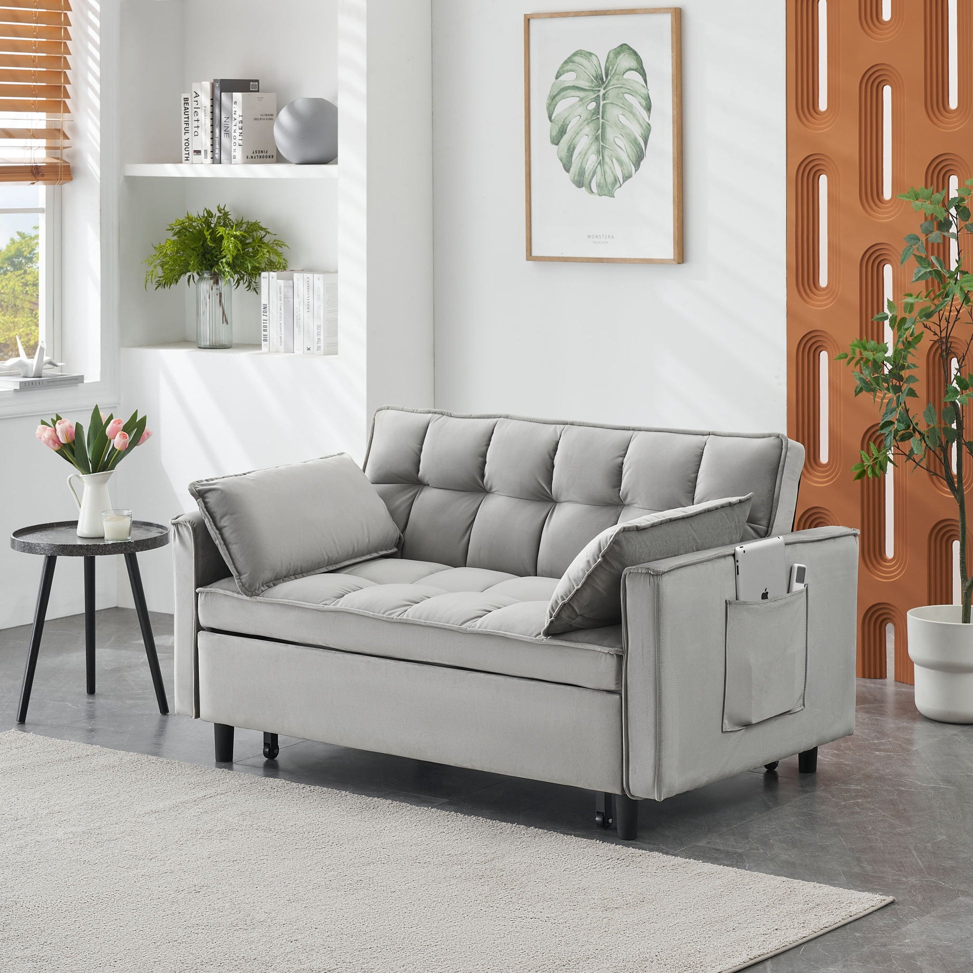 Modern Velvet Sofa, Sofa Pull-Out Bed, Small Love Seat Casual Sofa With Back, With Pillow, Pockets, Living Room Furniture, 3 In 1 Convertible Sleep Sofa Bed