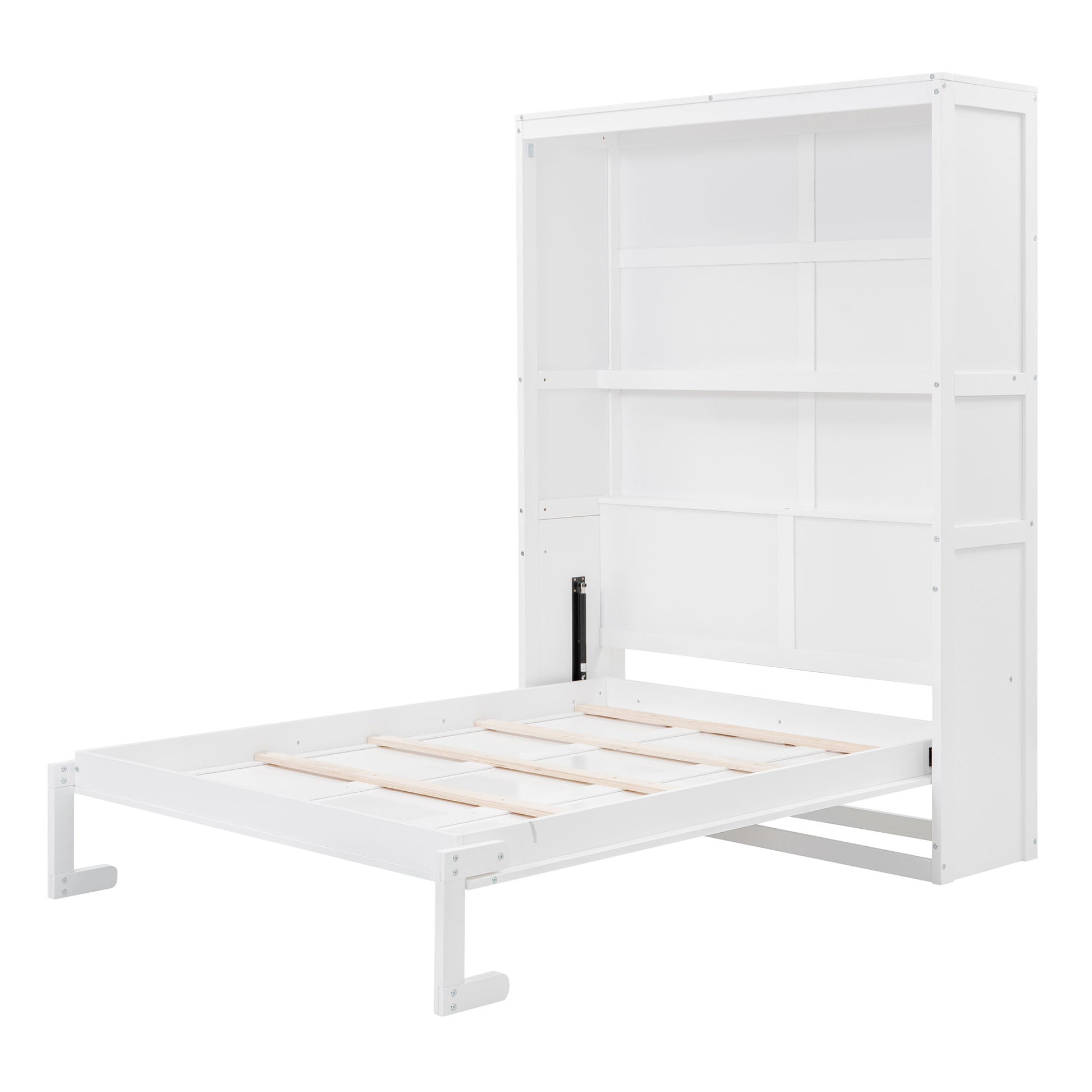Queen Size Murphy Wall Bed With Shelves, Space Saving - White