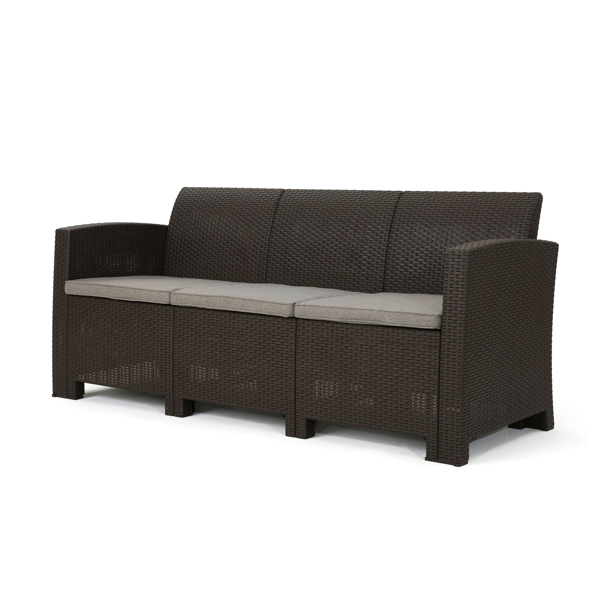 Outdoor 3 Seater Rattan Sofa With Water Resistant Cushions - Gray