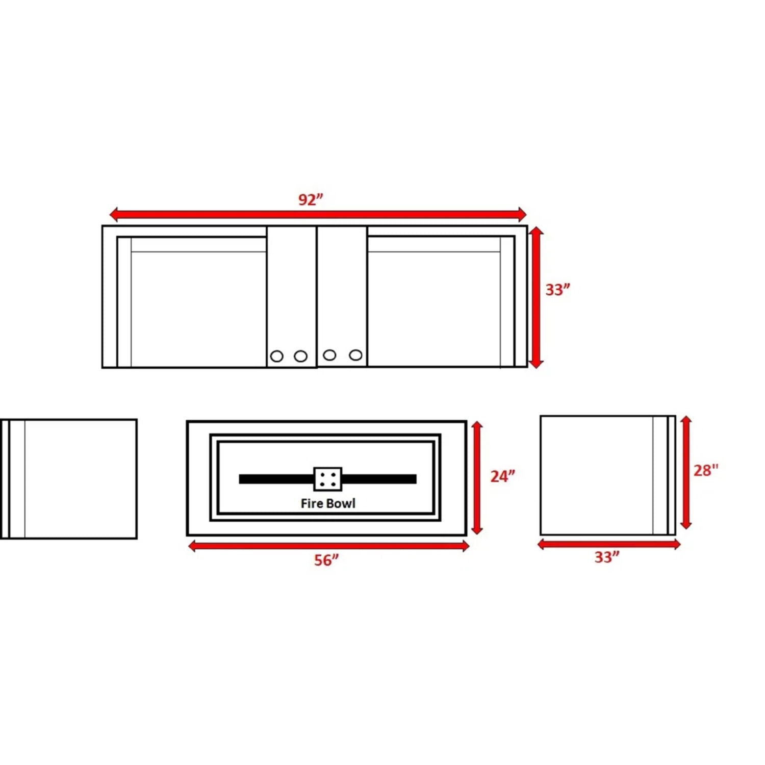 Outdoor Sofa Set With Cushions And Fire Pit, 4 Person Capacity - Espresso