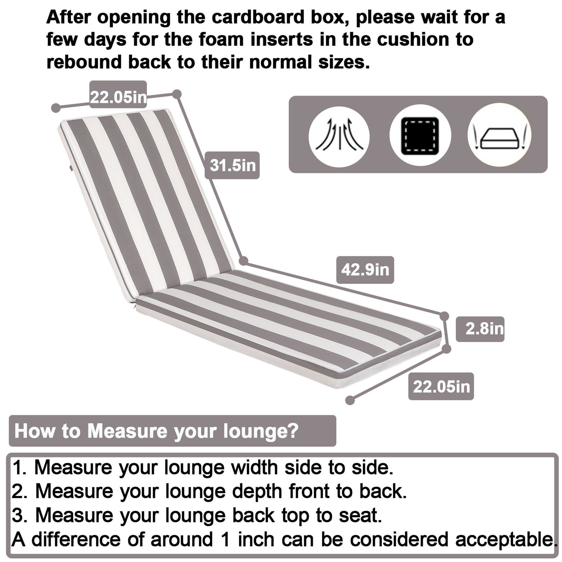 Outdoor Lounge Chair Cushion Replacement Patio Funiture Seat Cushion Chaise Lounge Cushion