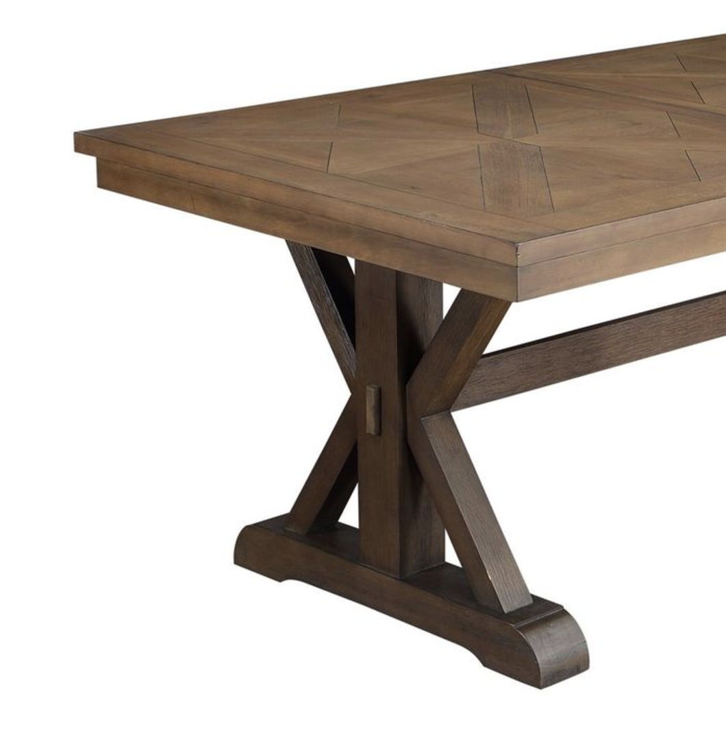 - Sturdy Design: The rectangular table is supported by bold X-shape pedestals, offering a sturdy foundation with a touch of architectural flair that enhances its stylish appeal.