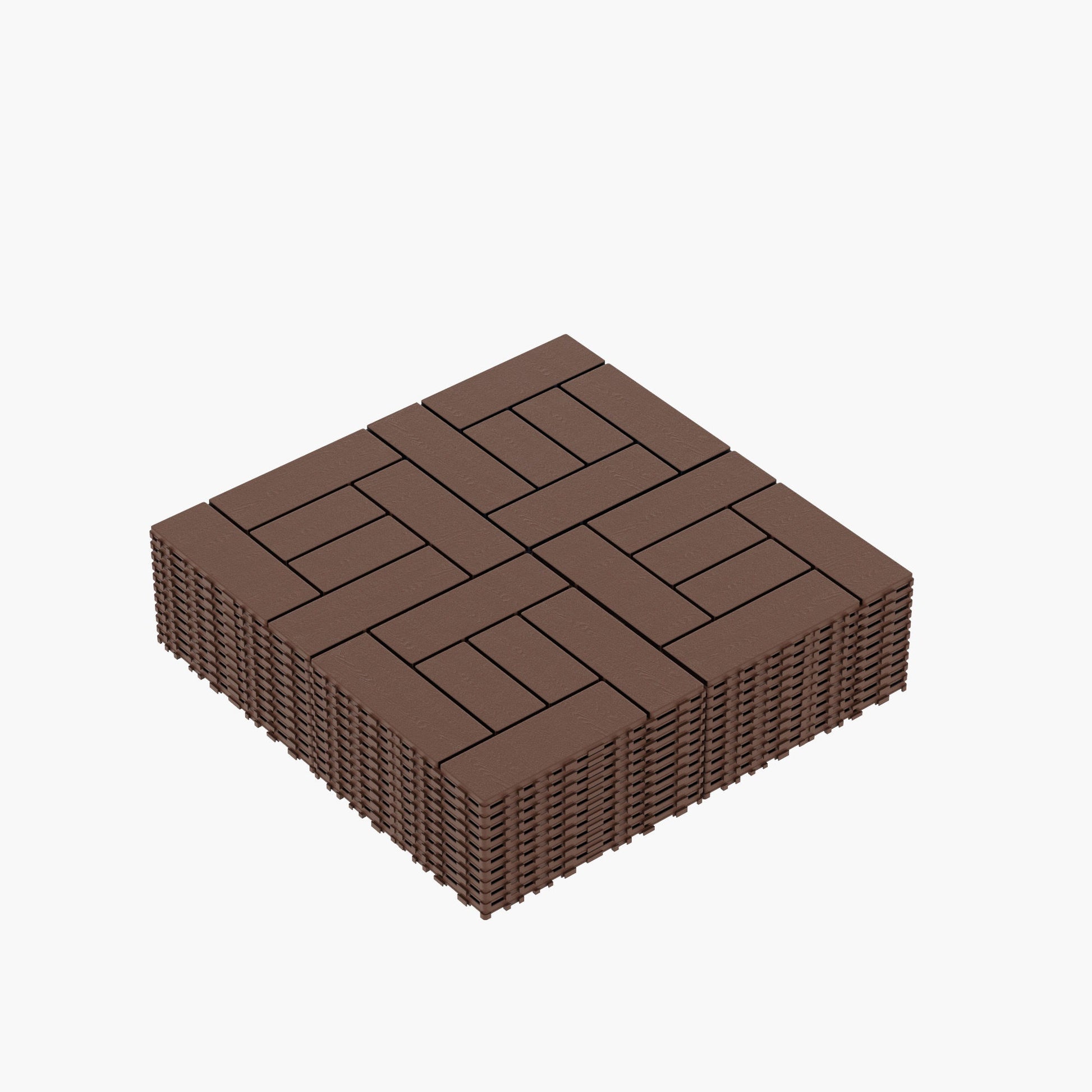 Zz Style 12" Patio Deck Tiles, Diy Interlocking Flooring - Red Brown