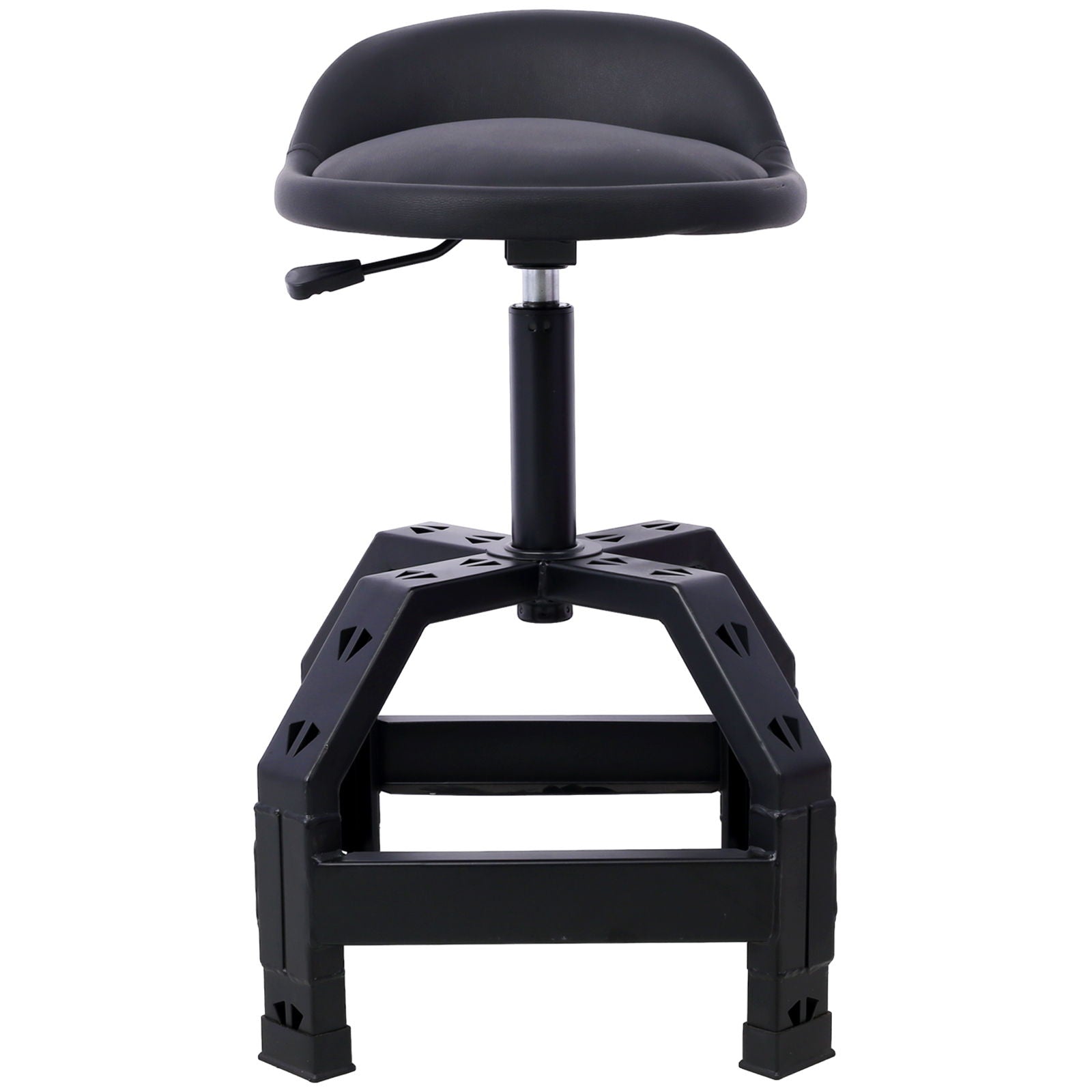 Pneumatic 360 Degree Swivel Stool, Mechanics Rolling Creeper Seat, Heavy Duty Mechanics Stool - Black