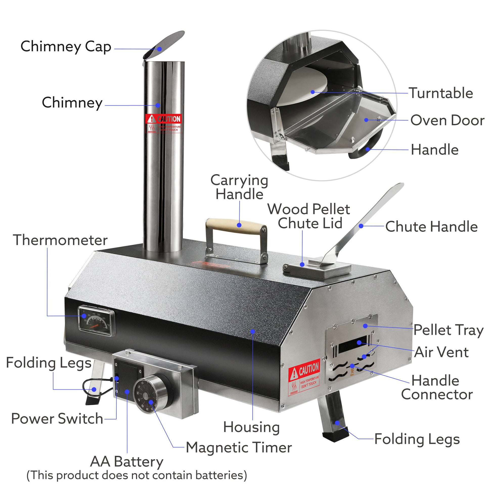 Portable Hard Wood Pellet Pizza Oven, Outdoor Cooking Pizza Maker, Countertop Pizza Oven - Black