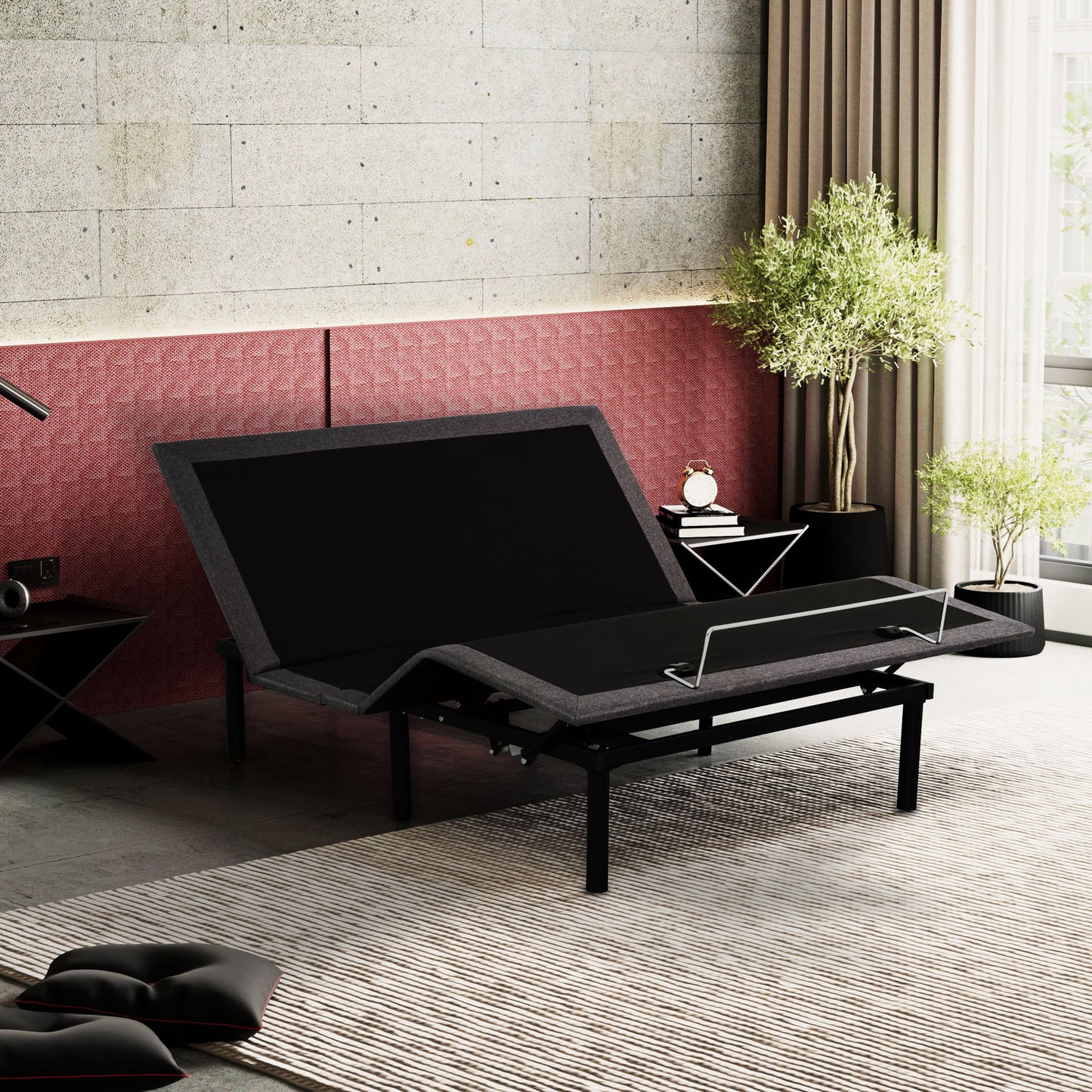 Split King Size Adjustable Bed Base With Wired Remote, Metal Frame - Black