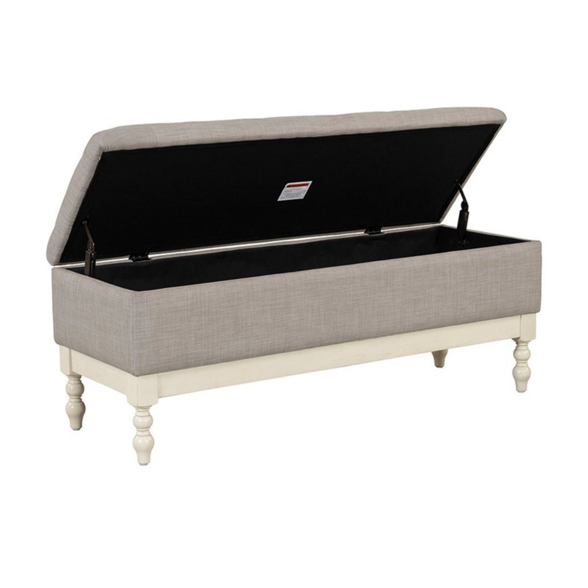 Tufted Storage Bench With Soft Close Lid - Light Gray / Cream