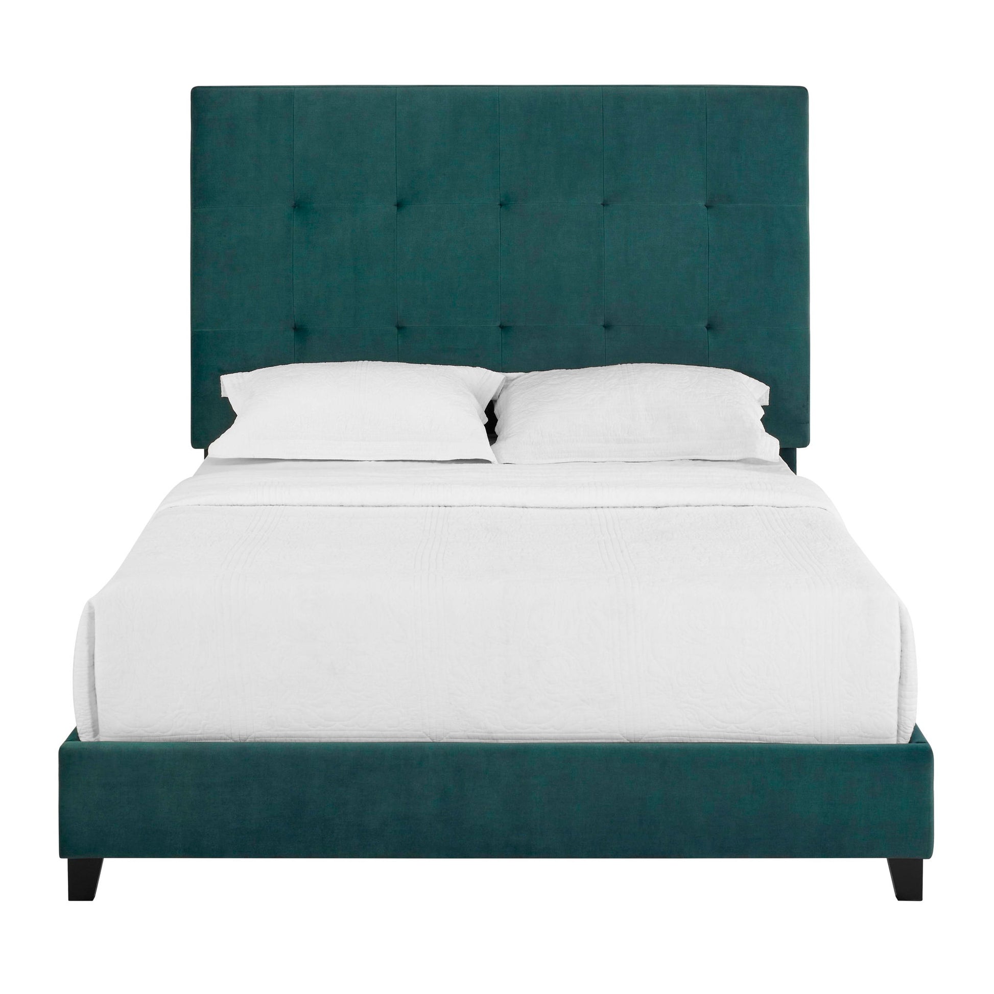 Queen Size Green Velvet Tufted Upholstered Platform Bed