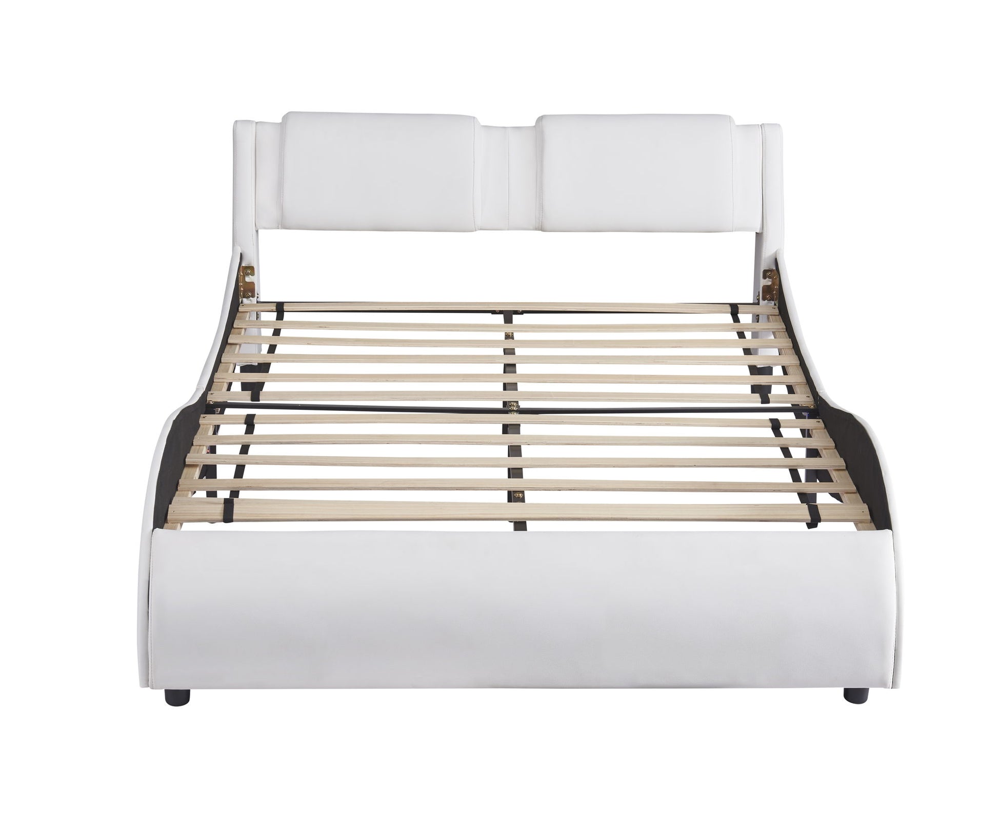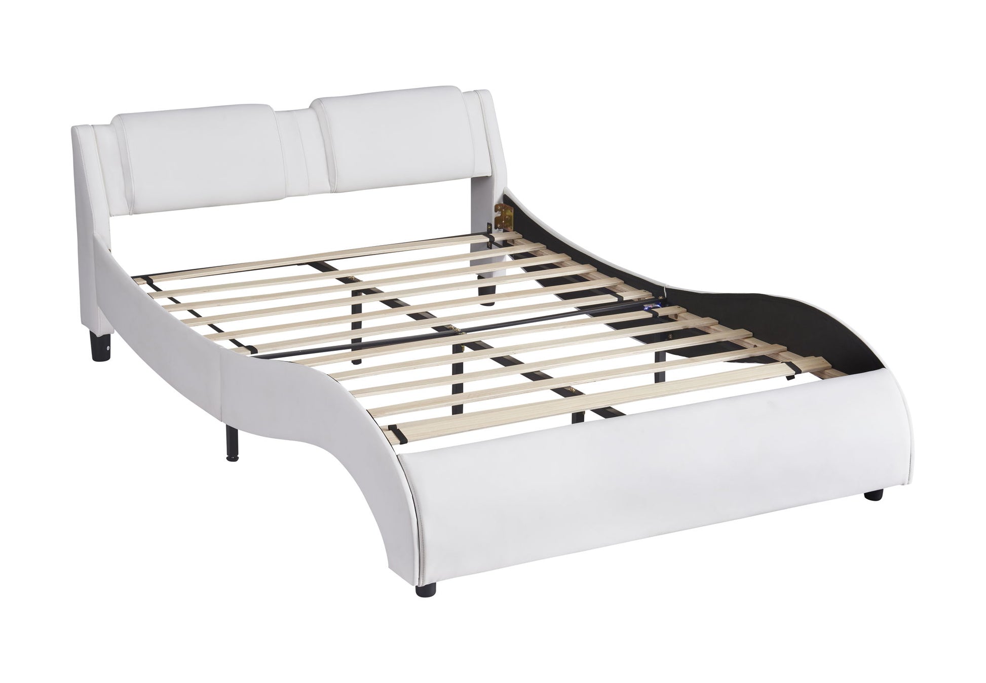 Full Size Upholstered Platform Bed With LED Light Frame With Slatted - White