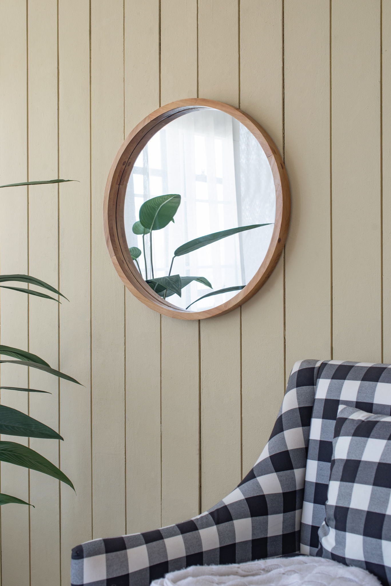 Wood Round Mirror, Farmhouse Decor Style Circle Wall Mirror For Living Room Bathroom Entryway - Brown